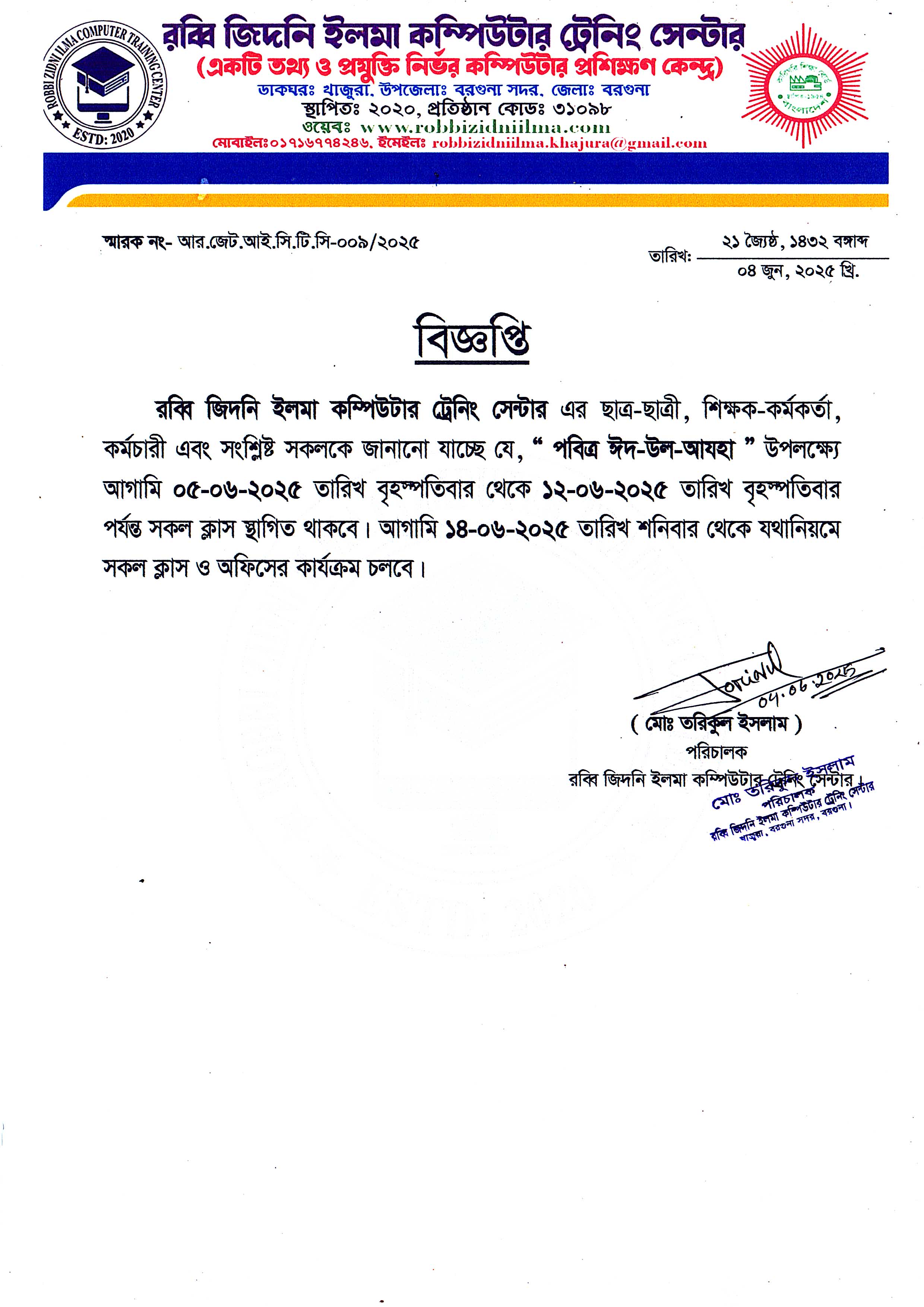 04.Jun.2025 ঈদ-উল-আজহা উপলক্ষ্যে অফিস ছুটির নোটিশ View Download